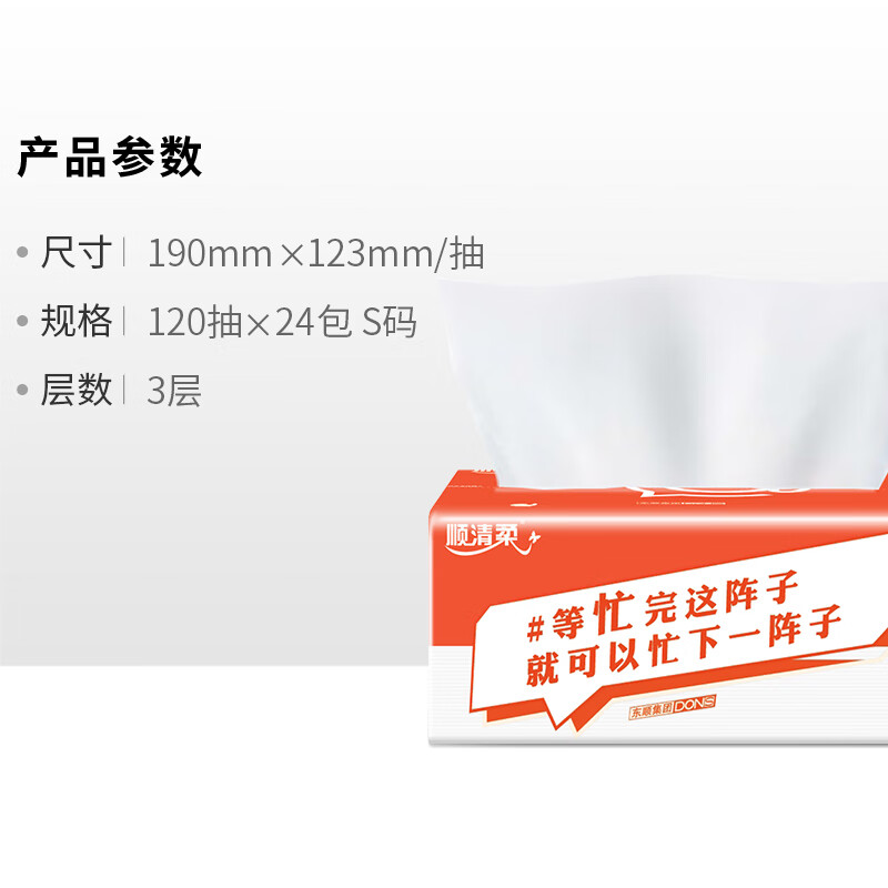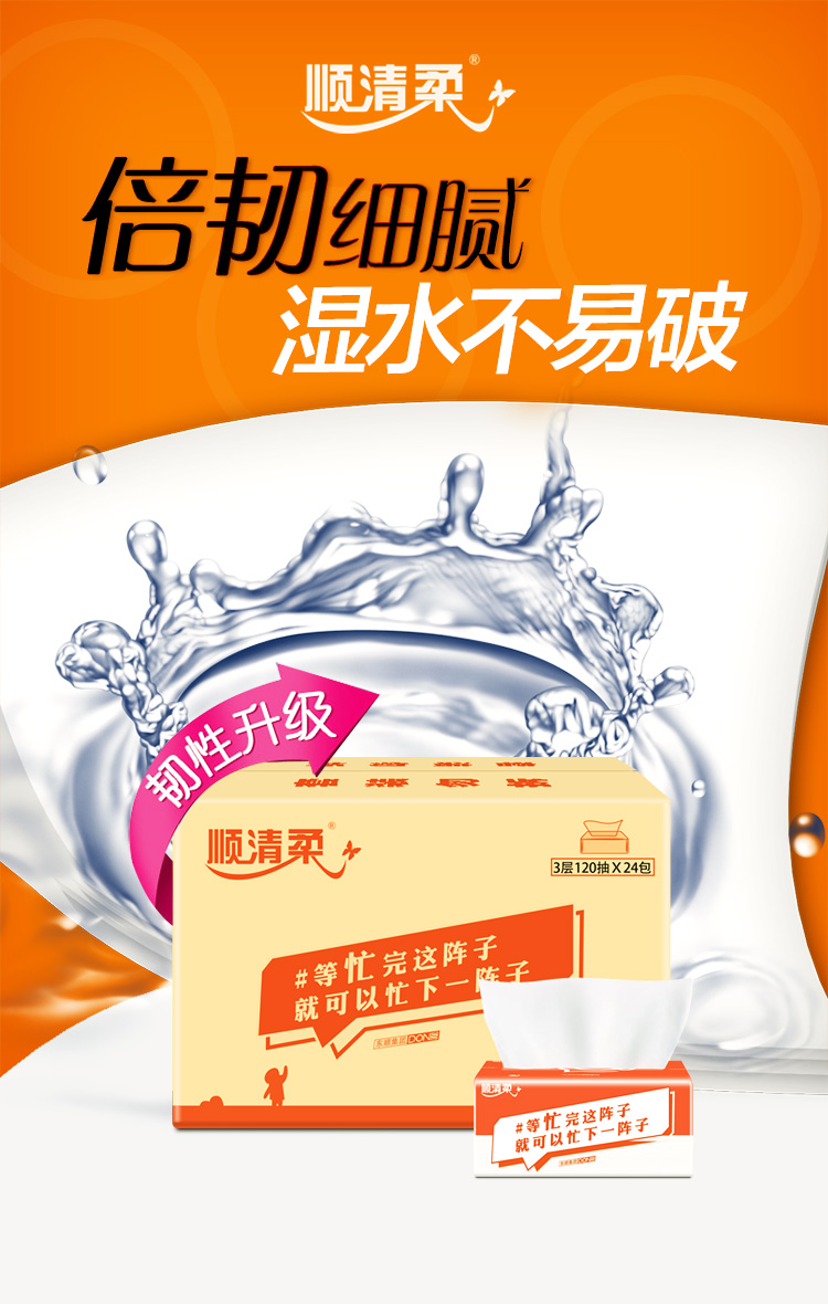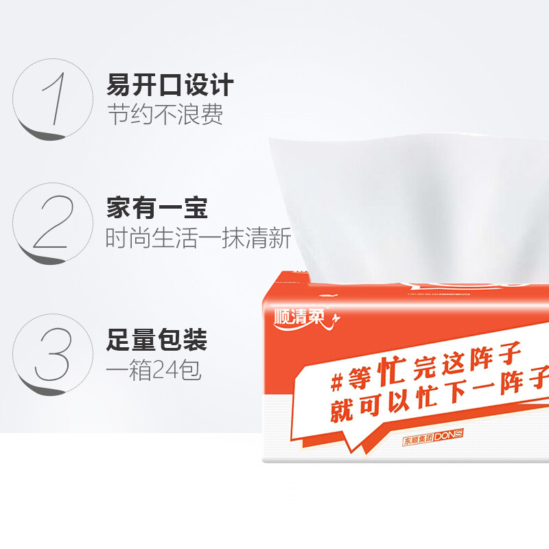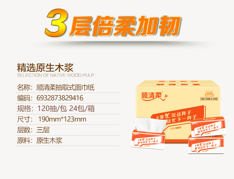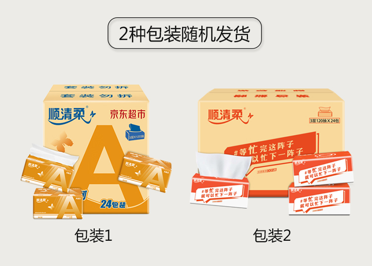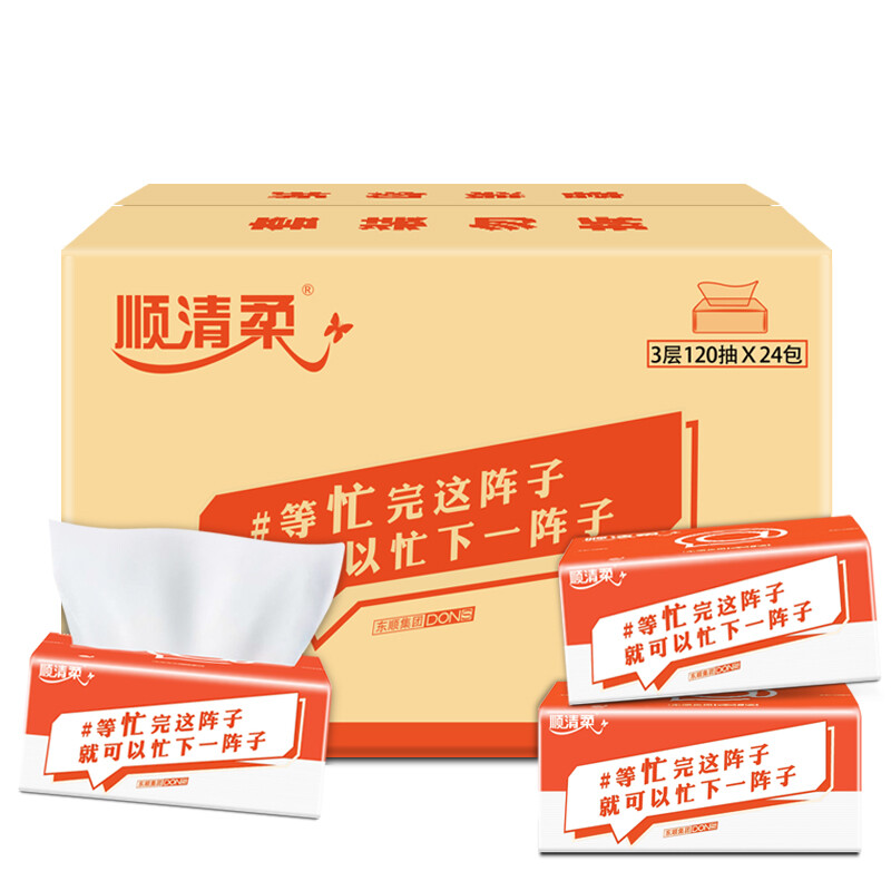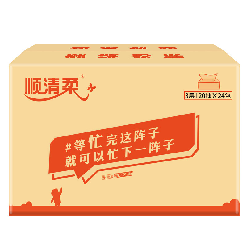 顺清柔 抽纸软抽 国际版3层120抽24包无香抽取式纸巾面巾纸(整箱销售) 自营