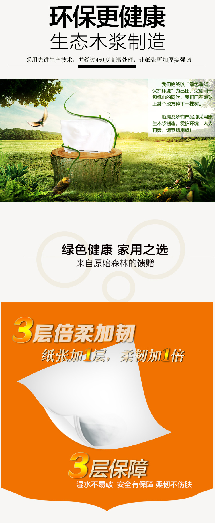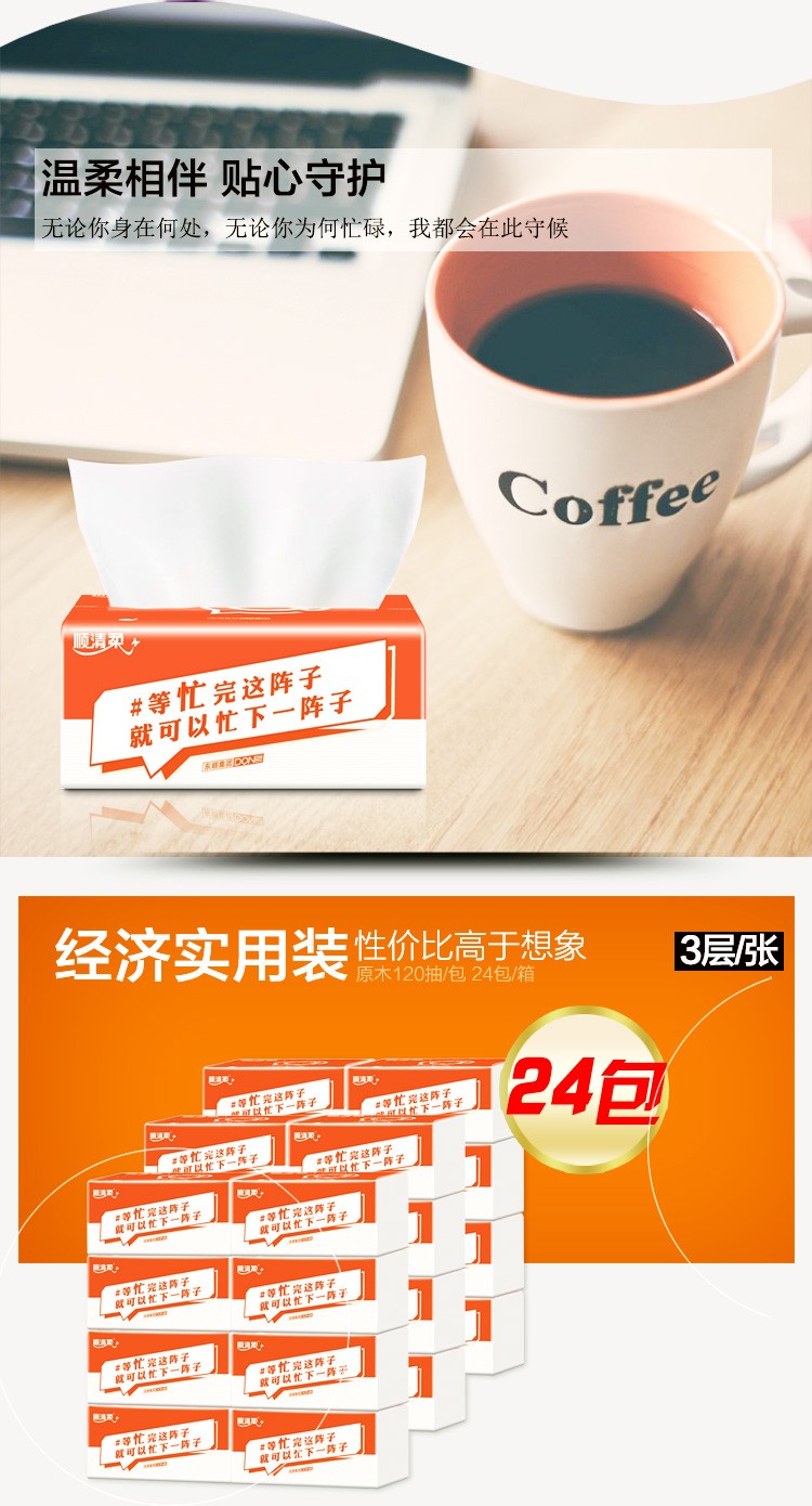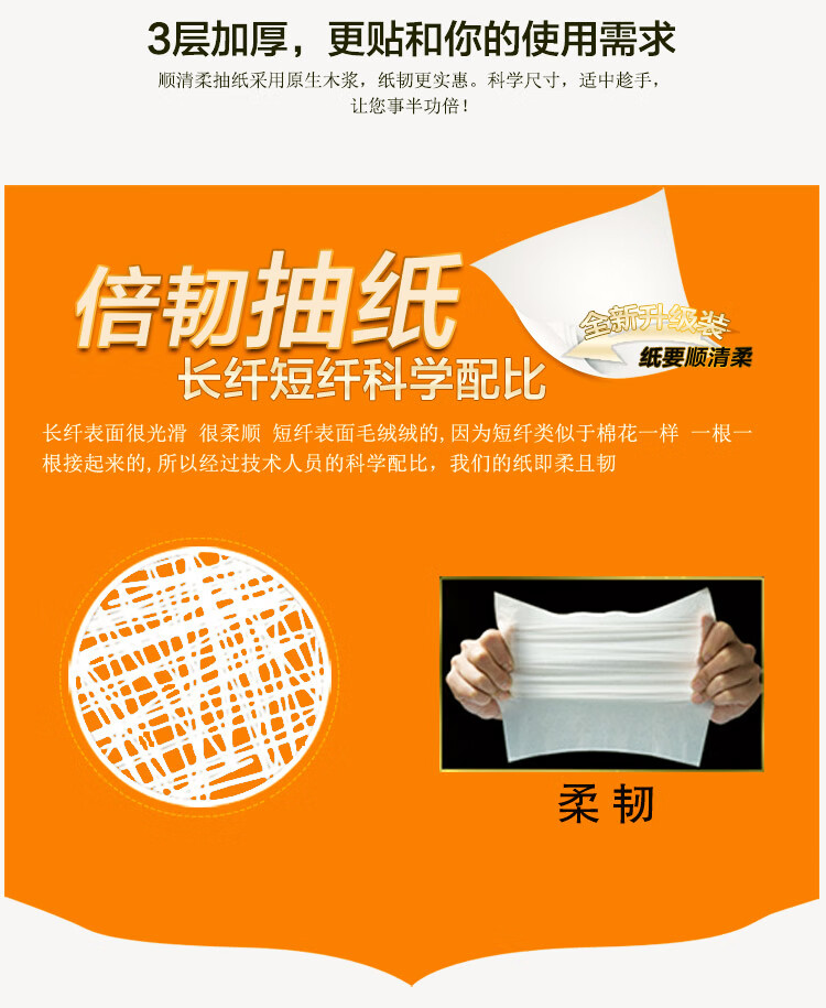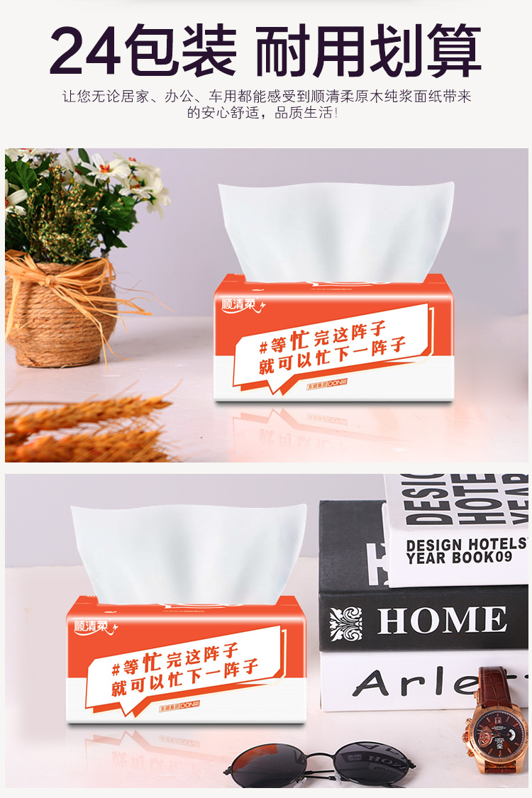 顺清柔 抽纸软抽 国际版3层120抽24包无香抽取式纸巾面巾纸(整箱销售) 自营