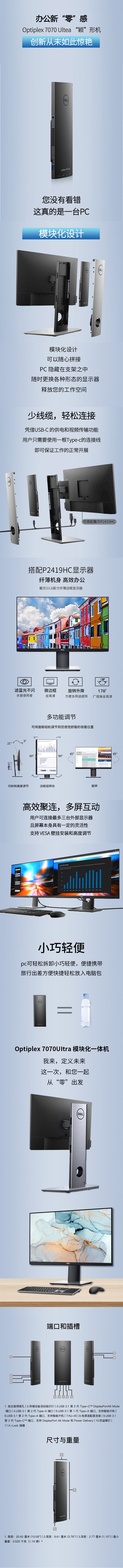戴尔DELL OptiPlex 7070UFFUltra超小型台式隐形设计i5 32G 256G固态+1T 23.8英寸P系列高端显示器 定制版 自营