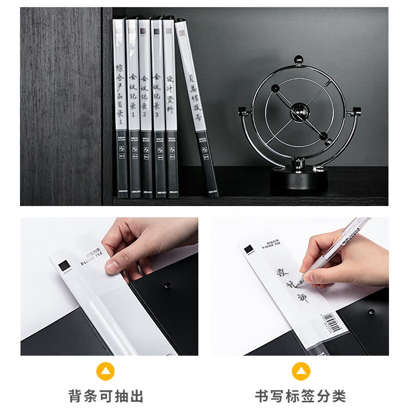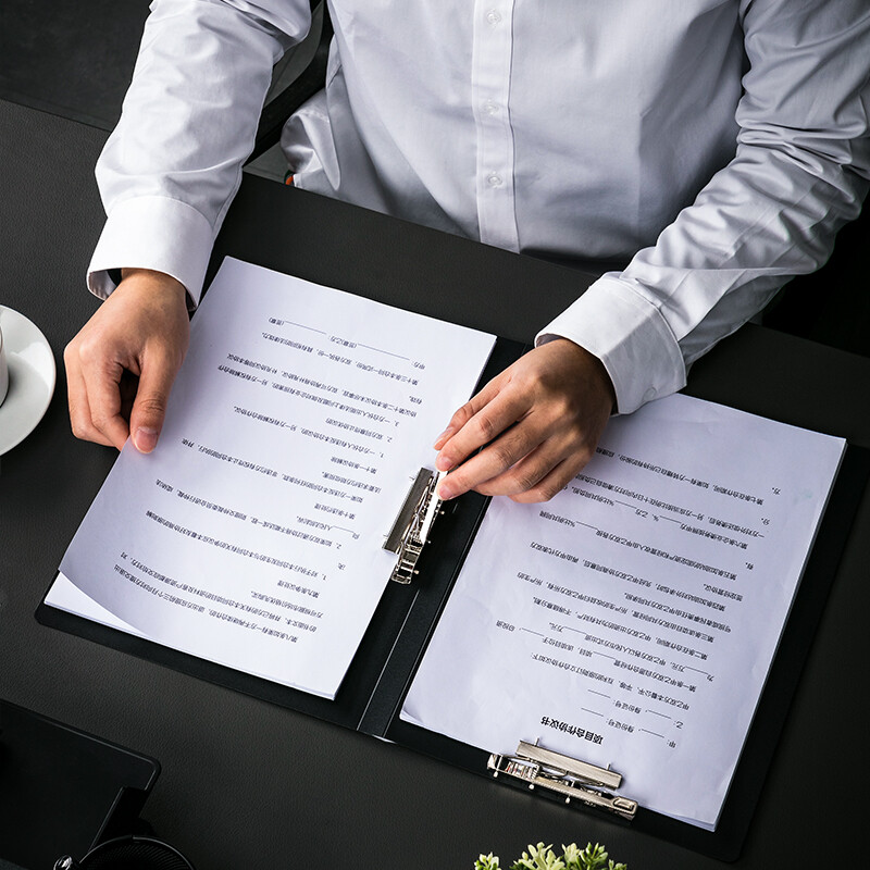 得力(deli)A4金属双强力夹硬文件夹 大容量试卷资料收纳夹诗朗诵签约夹板 5302黑色1只 自营