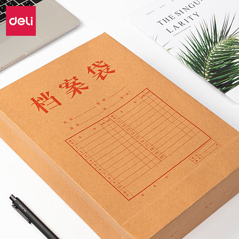得力(deli)10只A4混浆250g牛皮纸档案袋 侧宽8cm 大容量标书合同文件资料袋 办公用品 8386 自营