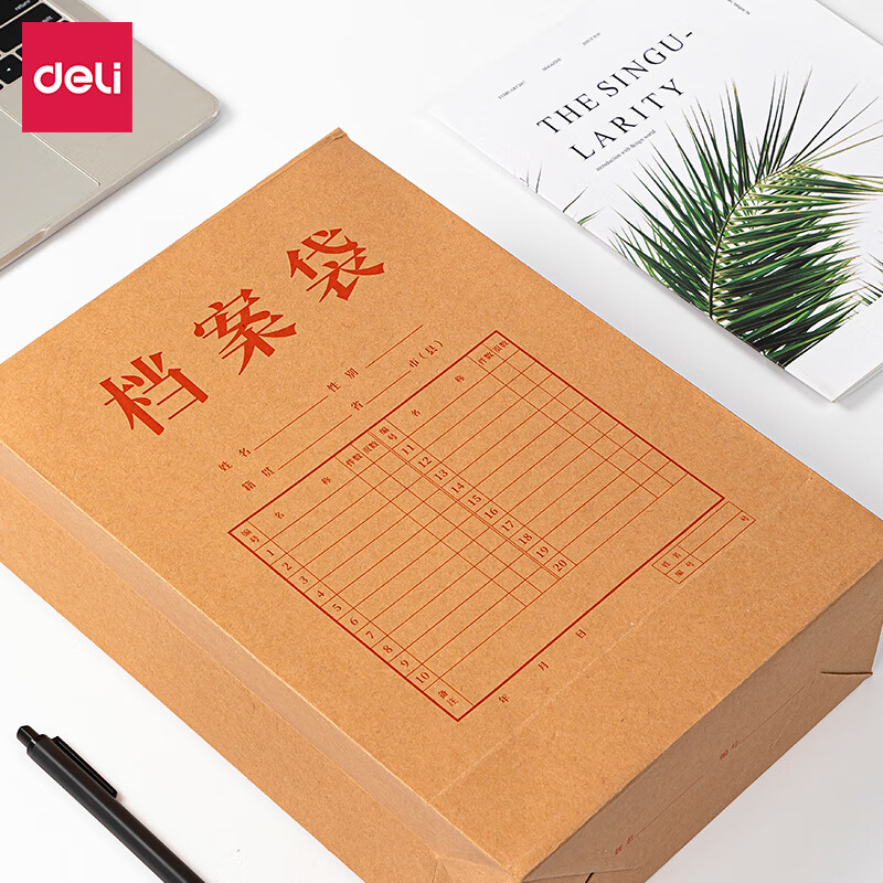 得力(deli)10只A4混浆250g牛皮纸档案袋 侧宽10cm 大容量标书合同文件资料袋 办公用品 8387 自营