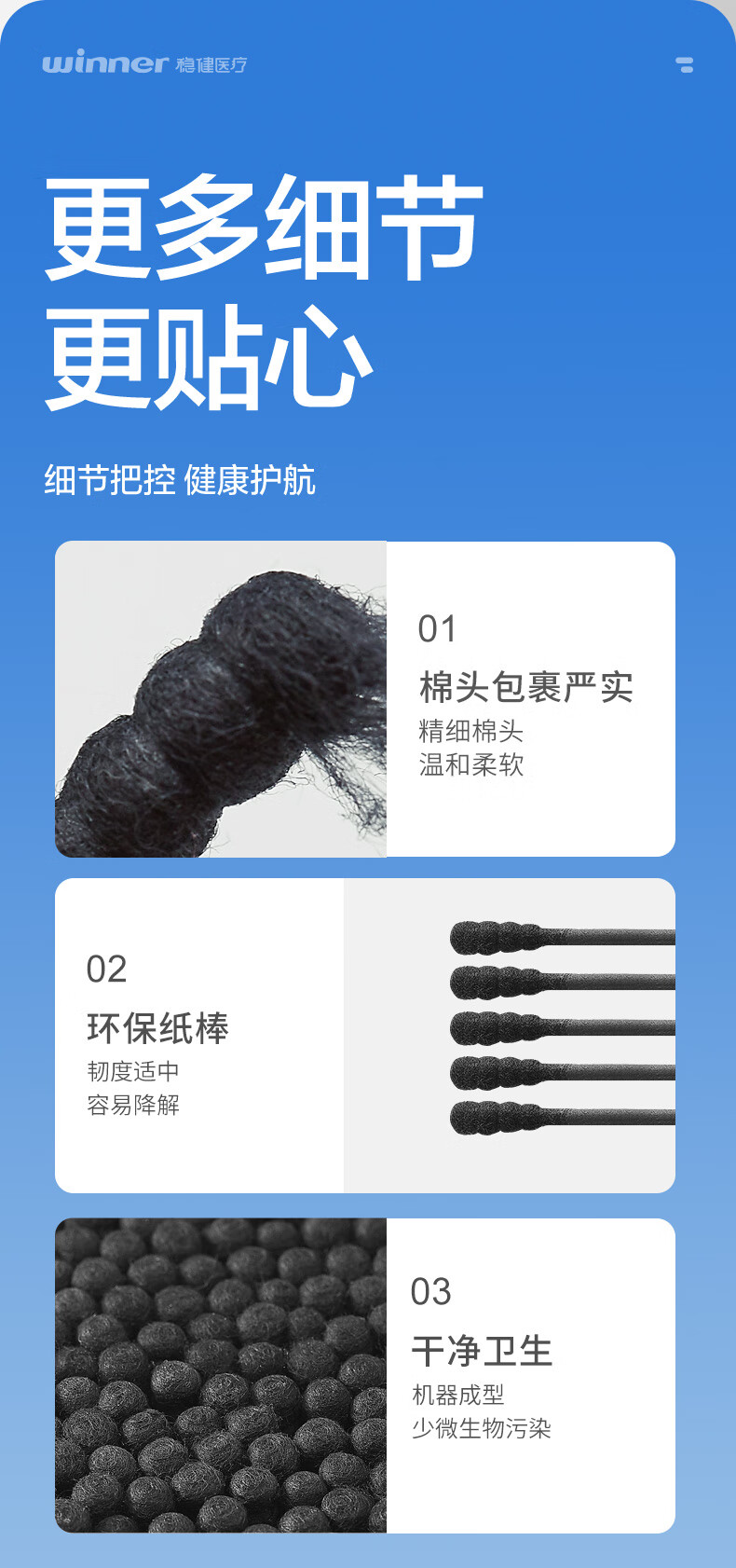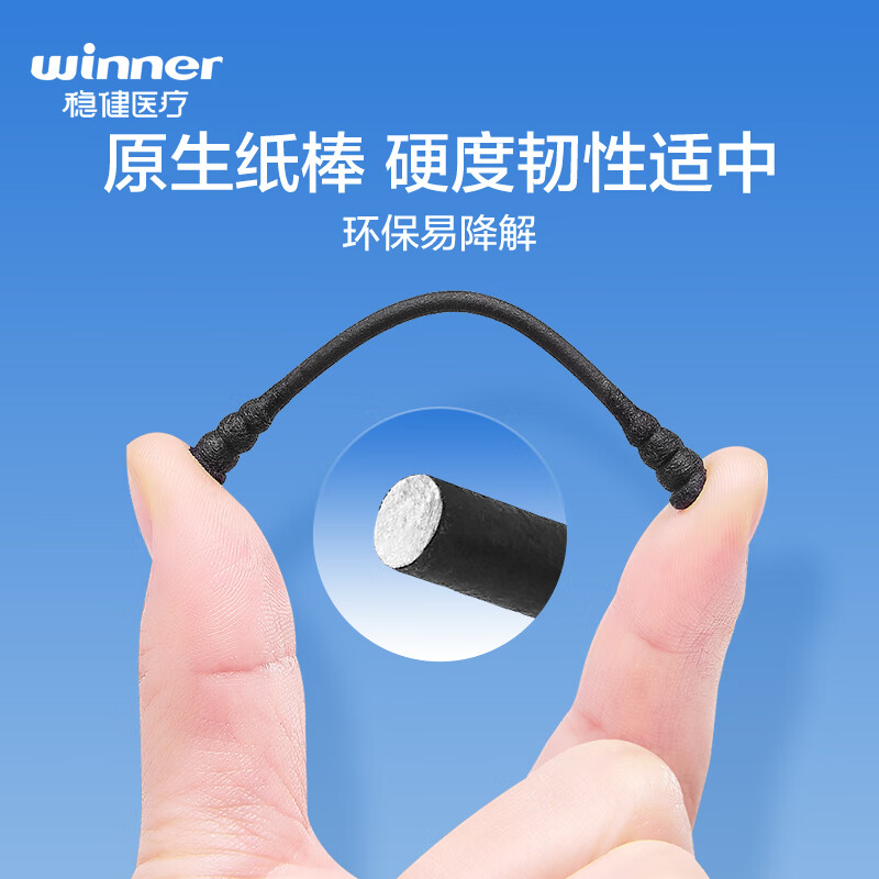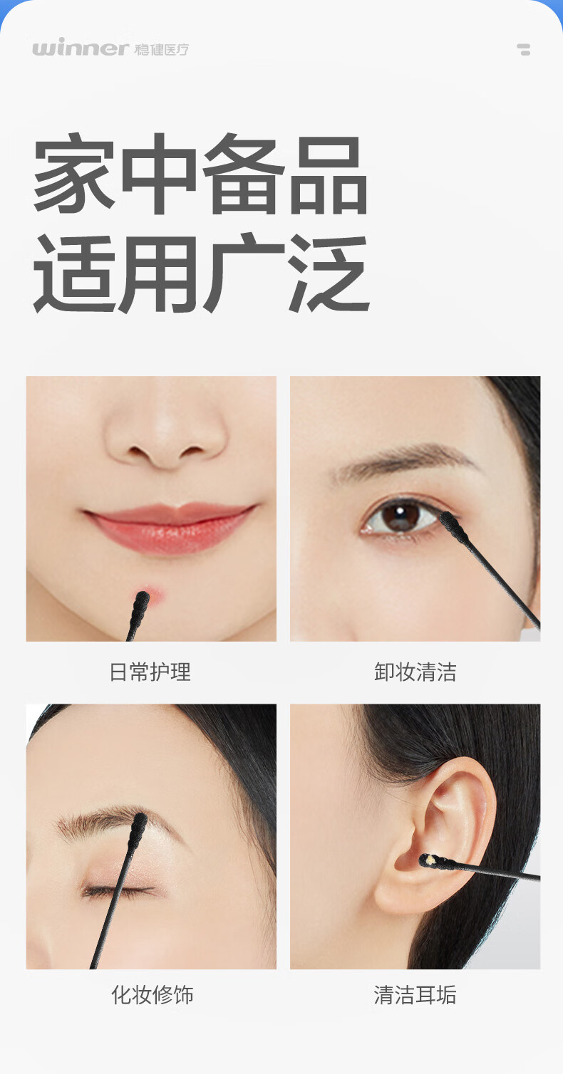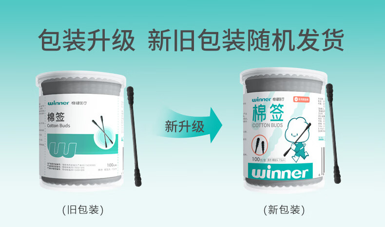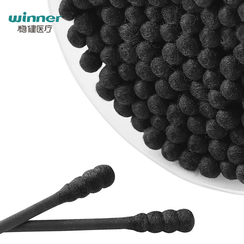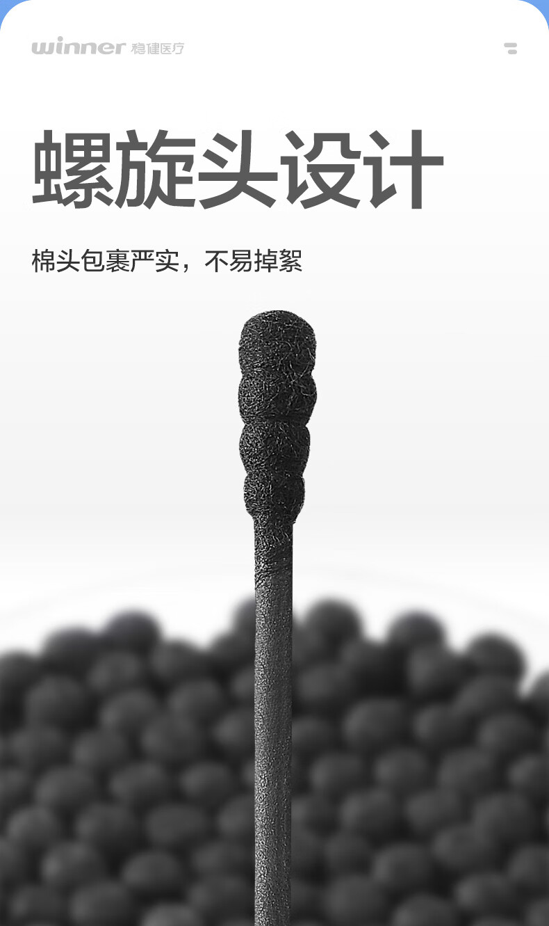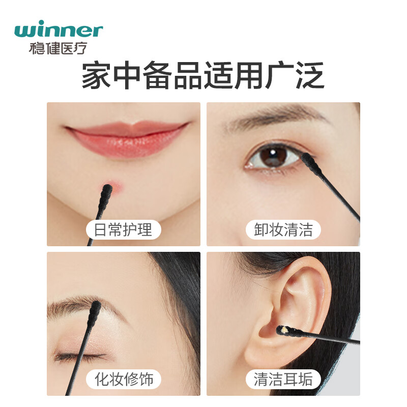 稳健(Winner) 一次性医用棉签7.5cm 100支/桶 黑色双螺旋头棉棒成人儿童日常清洁护理化妆掏耳棉棒 自营