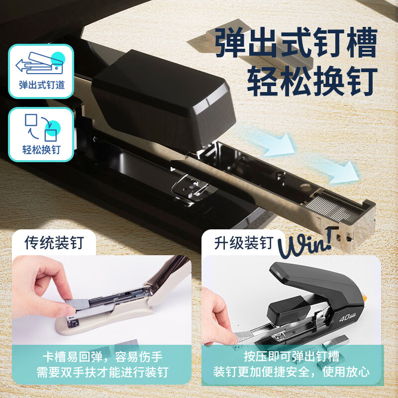 得力(deli)40页省力订书机/订书器 防卡钉功能 弹出式钉道 办公用品 黑色0478(不含钉) 自营