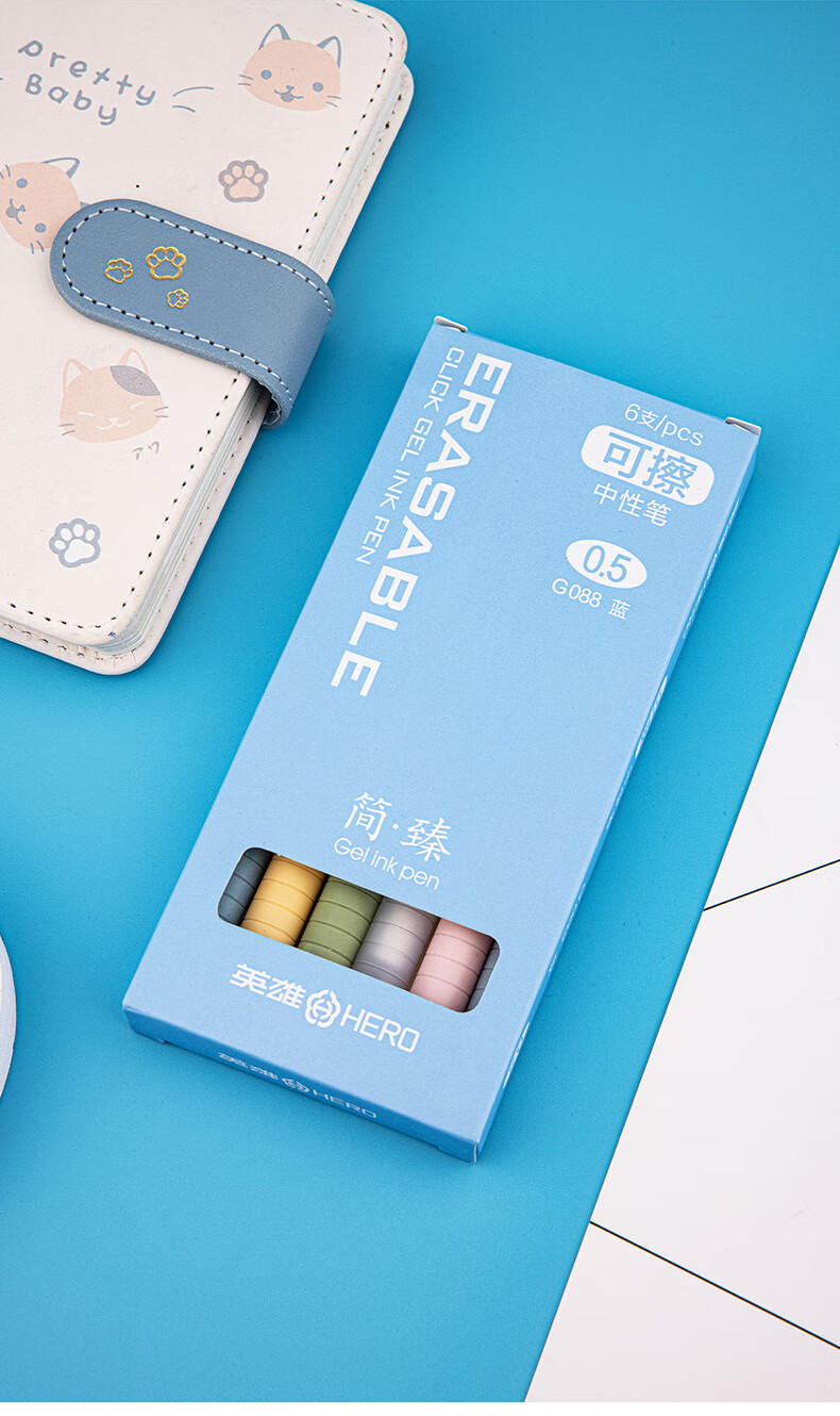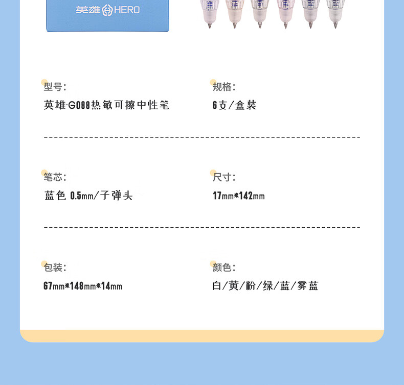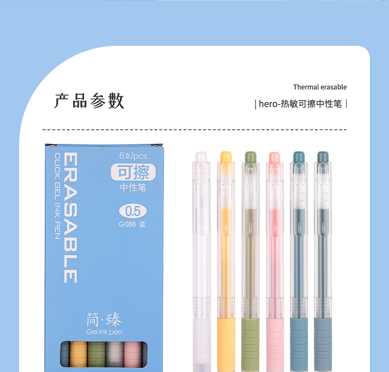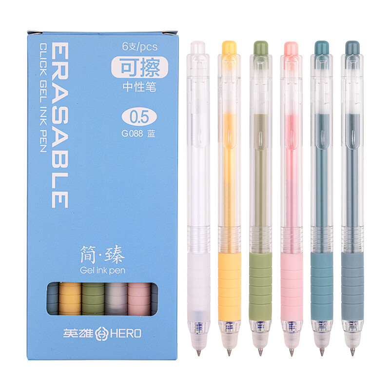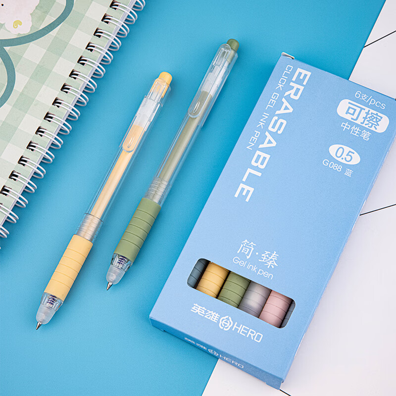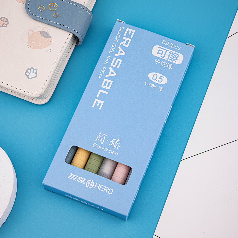 英雄(HERO)热可擦中性笔 G088子弹头按动签字笔学生水笔 蓝色6支装-0.5mm 自营