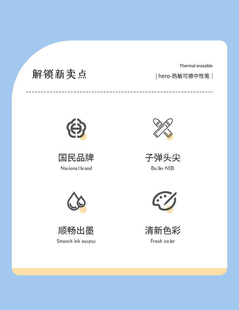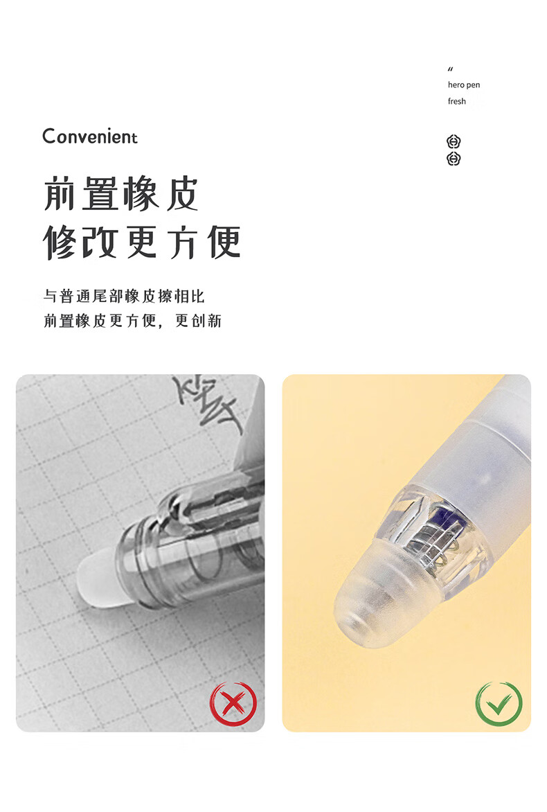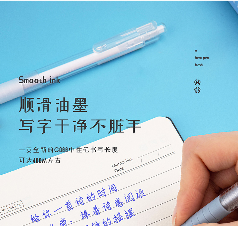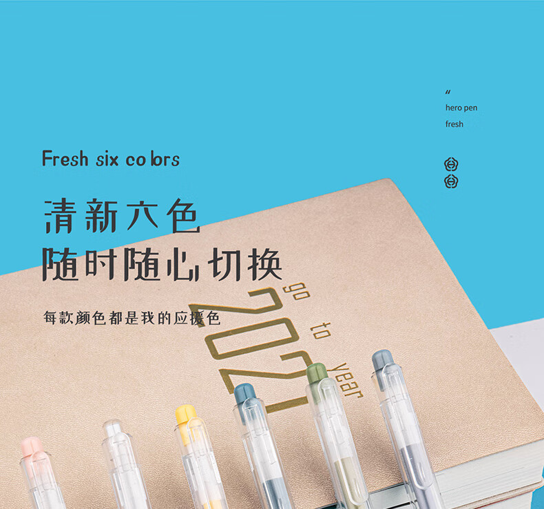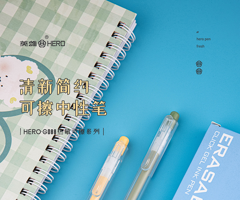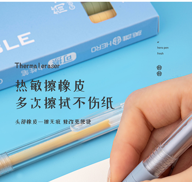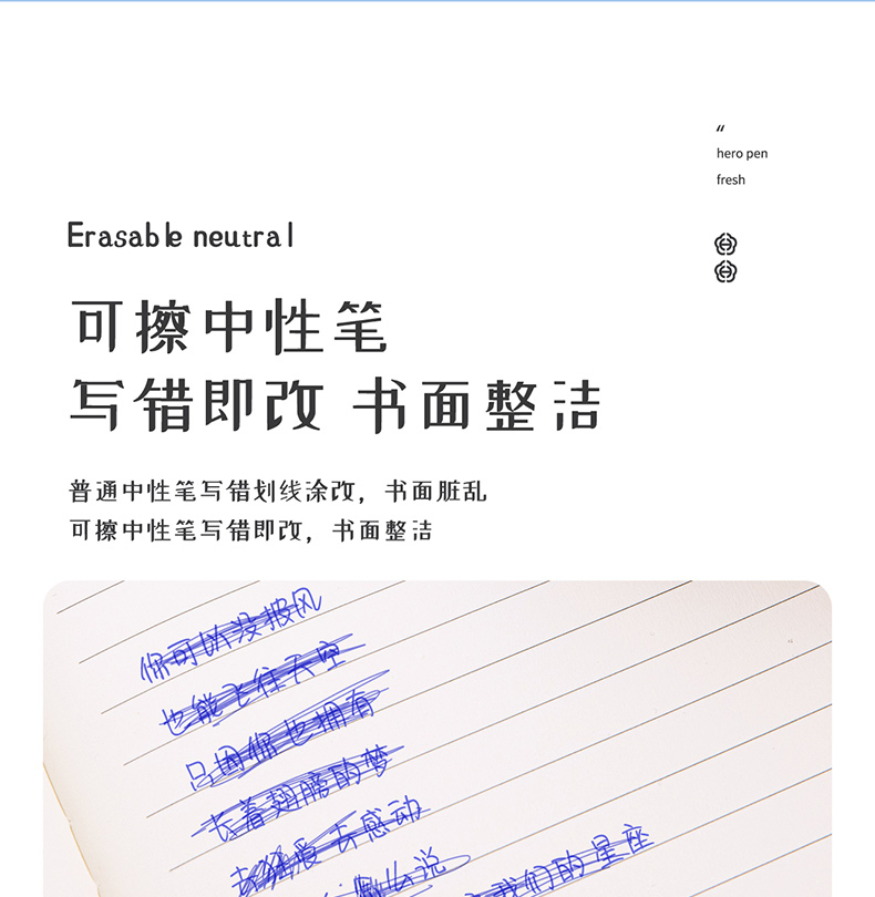 英雄(HERO)热可擦中性笔 G088子弹头按动签字笔学生水笔 蓝色6支装-0.5mm 自营