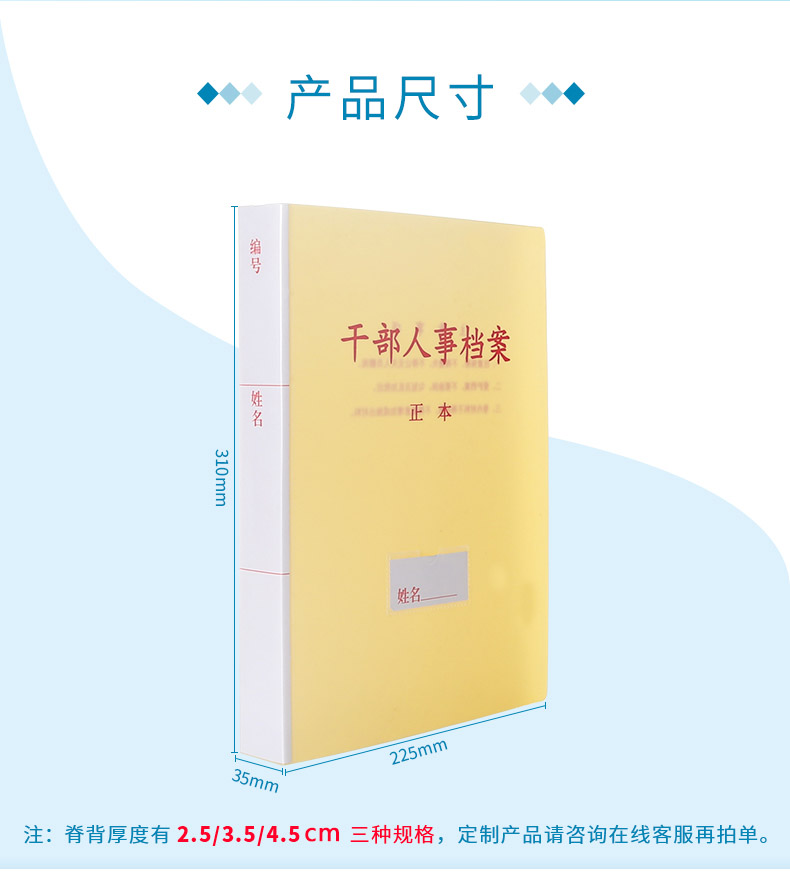 西玛(SIMAA)10个PP塑料人事档案盒3.5cm三柱蛇簧夹 定制A4新标准225*310*35mm 自营