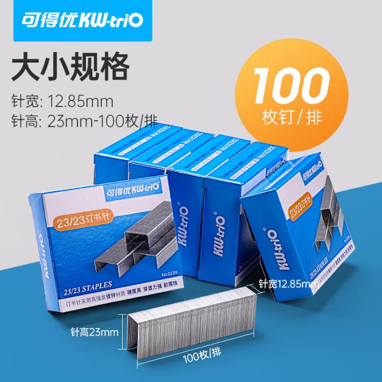 可得优(KW-triO) 023N 订书钉 通用订书针 办公文具订书机用 加厚型钉选 23/23 订书针 1000枚/盒 5盒装 自营