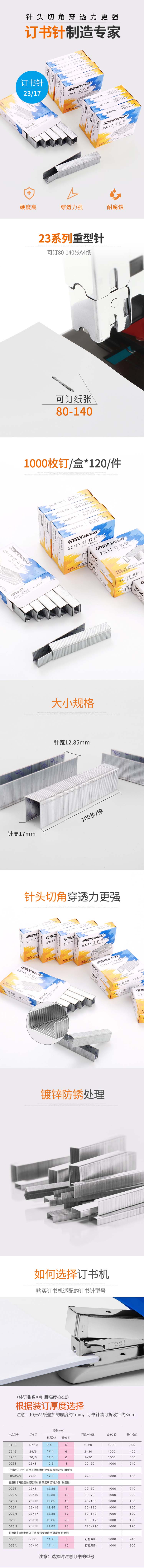 可得优 023H 厚层订书可订150张23/17加厚大号订书针财务装订钉重型定书钉子装书钉办公文具 10盒装 自营
